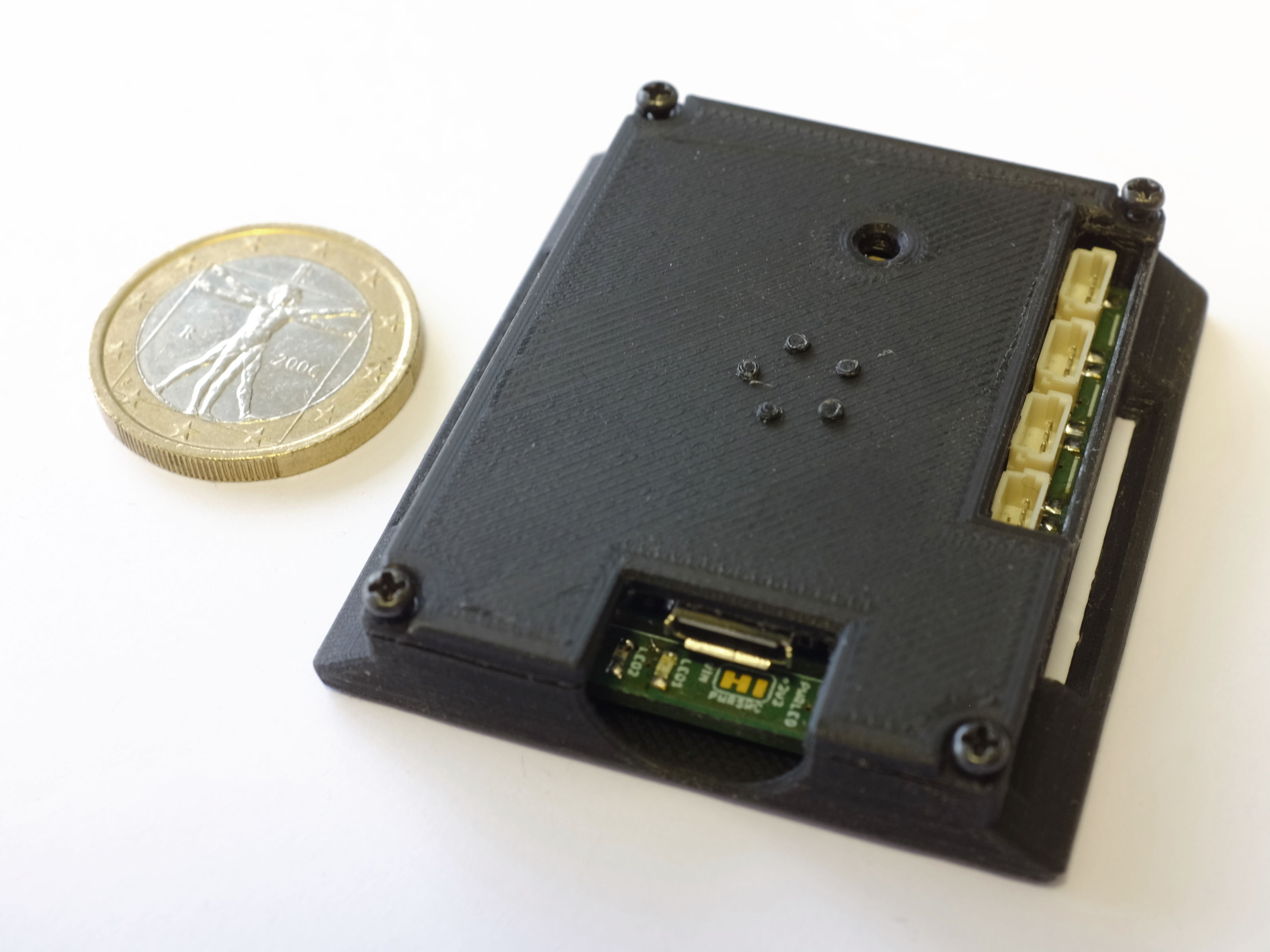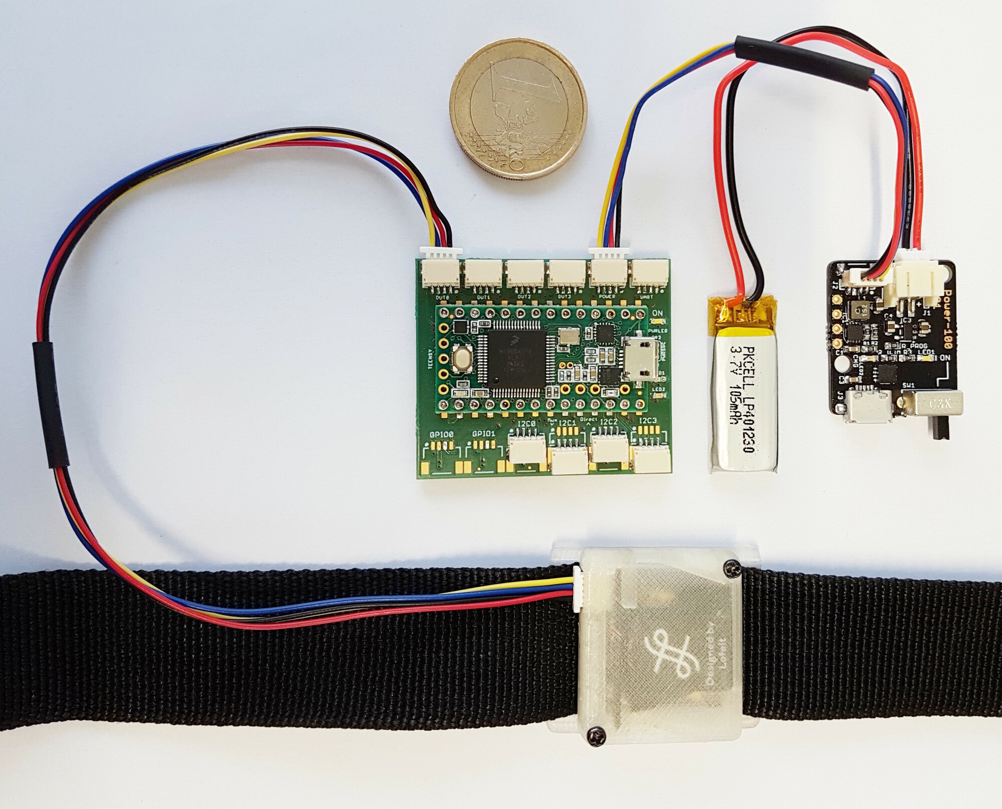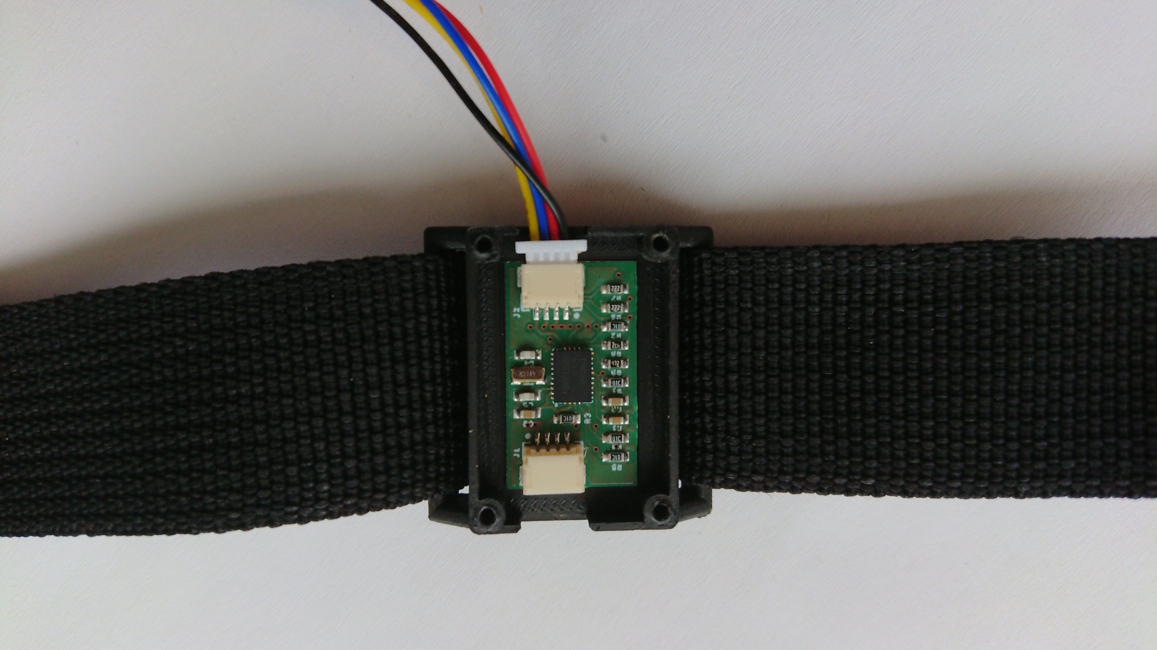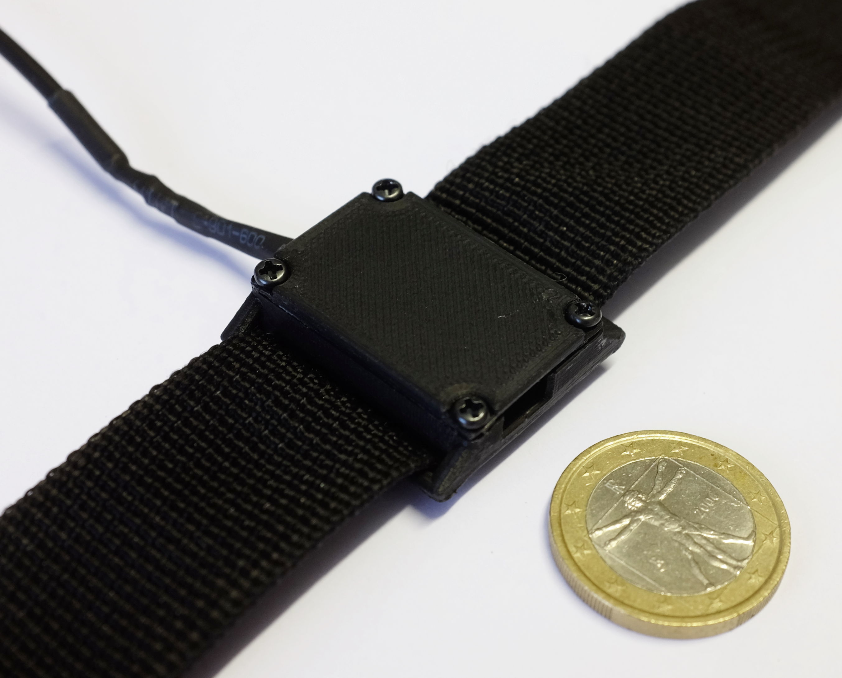 We 3D-printed housings for mounting our modules on 1" webbing straps (on an Ultimaker UM3). A shared parameterized CAD model (Siemens PLM SolidEdge) facilitates rapid adaptation to new modules. A two-way hook on the top cover allows to affix zip ties for strain relief.