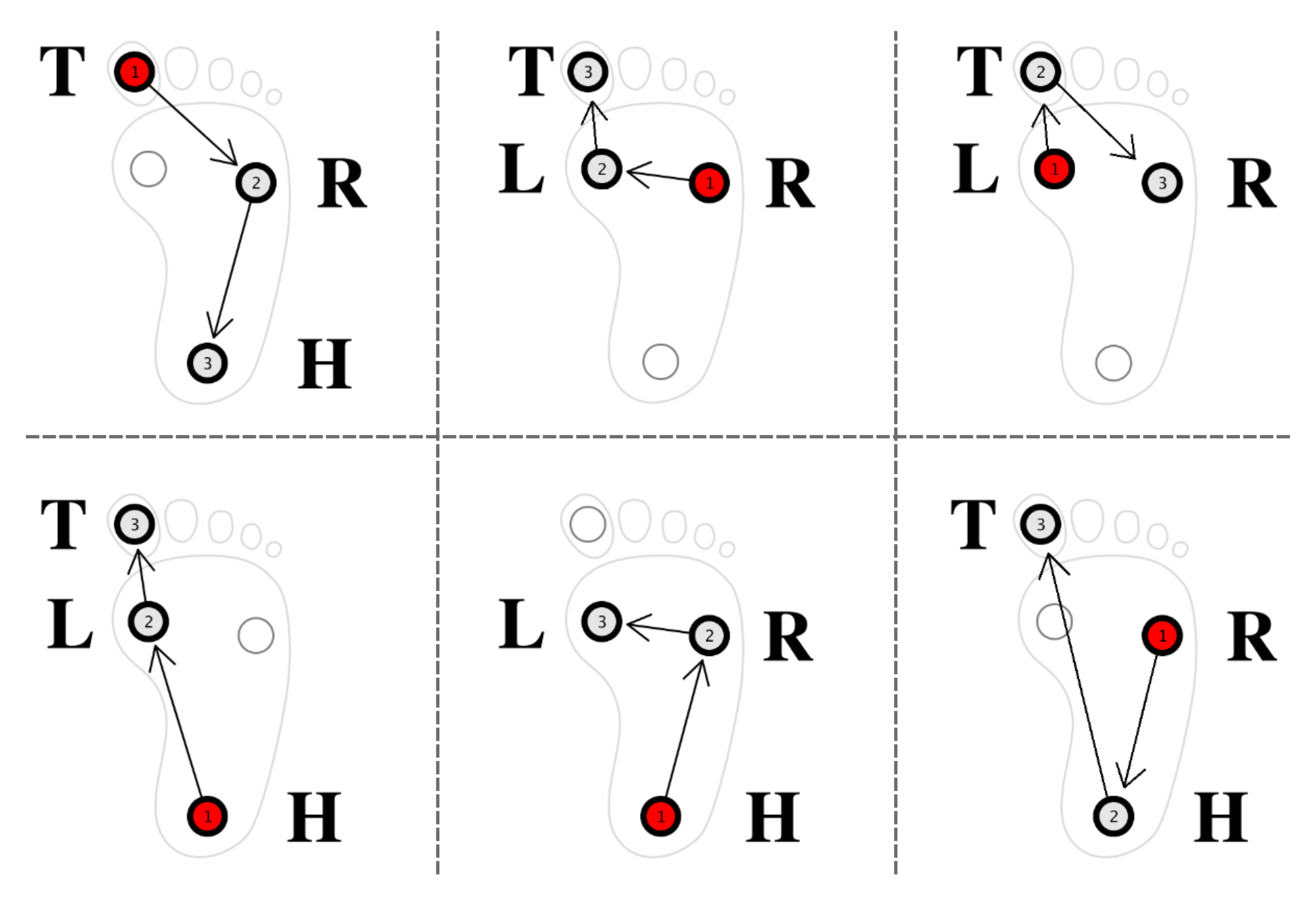 Foot-based interface control may present an appealing option when the hands are occupied, such as in the control of machines (car pedals) and instrumentation for doctors. Radial menus can be controlled by ankle rotation, but auditory feedback to allow more than a few items might not be suitable, for example due to ambient noise. We compared two types of vibrotactile pulses against an auditory click for indicating steps in an angular menu of 3, 6, or 9 items (shown below) and found that while not as good as auditory, vibrotactile feedback allowed still enabled good user performance. We found that a directional feedback was significantly better than simultaneous activation of the L/R tactor, possibly due to the light loading of the foot during sitting.