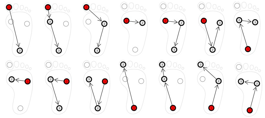 I conducted a pilot study to quantify user’s ability of users to discriminate between 14 tactons, spatio-temporal activation sequences, of three tactors while standing. We found finding near-perfect recoginition rates when coupling between actuators and foot-sole was good, but when the sole was only lightly loaded, each actuator made the entire insole vibrate, hindering discrimination.