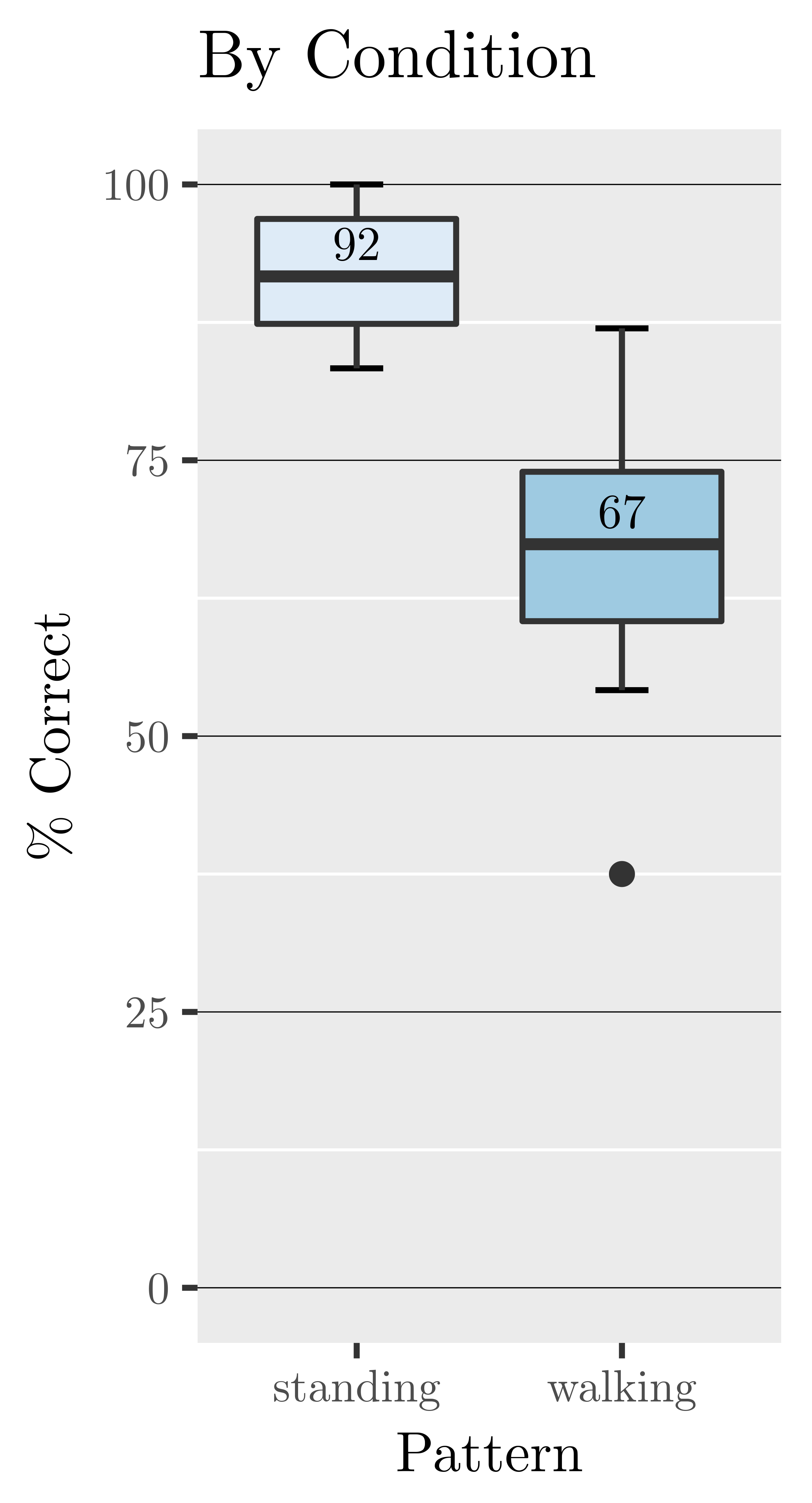 We evaluated this integration with another tacton discrimination study, this time including a walking condition. Tactons where delivered just before footfall, when plantar tactile sensitivity is believed to be highest. We asked participants to distinguish between six tactons and found that detection was nearly perfect during stance and still remained high (~75%) during gait.